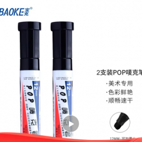 宝克/BAOKE MK820-12 书写用笔类用具 12mm 黑色POP唛克笔 海报广告画笔 彩色马克笔记号笔 2支装 MK820-12