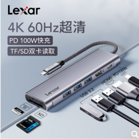 雷克沙/Lexar LPAH31N-RNHNC 数据线 七合一扩展坞 4K@60Hz高清投屏 Type-C接口 USB3.2 PD100W快充 SD/TF双卡双读