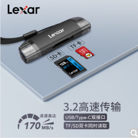 雷克沙/Lexar LRW470U U盘/存储卡 USB3.2高速读卡器 SD/TF 二合一多功能 支持UHS-II读取 适用手机相机监控摄像内存卡