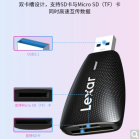 雷克沙/Lexar LRW450URBCN 集线器 USB3.1读卡器多合一 TF/SD 二合一 监控记录仪TF卡相机SD卡多功能读卡器 多卡多读 稳定兼容