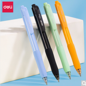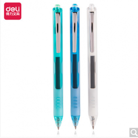 得力/deli 33659 书写用笔类用具 按动中性笔0.5mm双球珠子弹头黑4支/盒33659