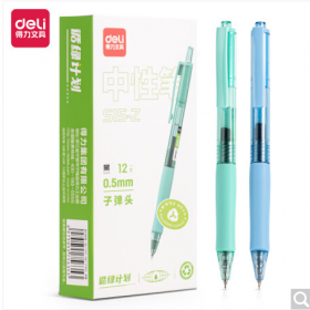 得力/deli S15-Z 书写用笔类用具 再生料臻顺滑中性笔0.5mm子弹头黑色12支/盒S15-Z
