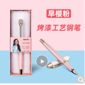 得力/deli S166 书写用笔类用具 钢笔学生三年级用男生女生练字书写钢笔儿童金属旋转吸墨钢笔 金属钢笔-早樱粉