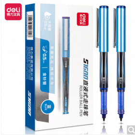 得力/deli S1600 书写用笔类用具 1600米大容量中性笔直液笔 0.5mm全针管学生签字笔走珠笔水笔 蓝色12支/盒S1600