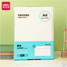 得力/deli NA460-1 薄本册 A4/60张横线活页本替芯 学生写作加厚可拆卸笔记本活页纸记事本子内芯 NA460-1