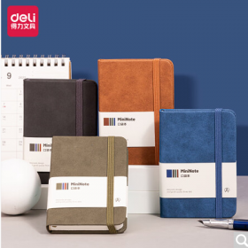 得力/deli BP119 薄本册 A7/96张便携笔记本子 创意型小号皮面本口袋本迷你学生小本子记事本日记单词手账本 棕色BP119