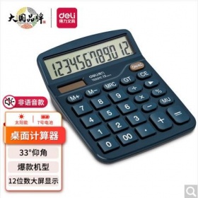 得力/deli TE837C 电子计算器 双电源计算机 12位数大屏幕桌面计算器 办公用品 蓝色TE837C