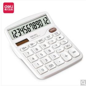 得力/deli TE837C 电子计算器 双电源计算机 12位数大屏幕桌面计算器 办公用品 白色TE837C