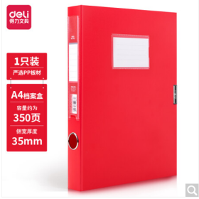 得力/deli 63203 档案盒 35mmA4粘扣档案盒塑料文件盒资料盒凭证文件收纳盒财会用品 办公用品 63203红色