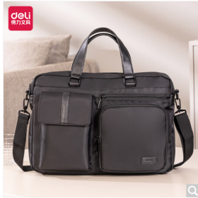 得力/deli BG106-09 文件袋 加厚立体办公手提袋/会议包/事务包/商务拉链袋电脑公文包便携 黑色BG106-09