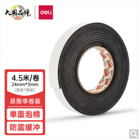 得力/deli 30472 胶带 海绵胶带EVA泡绵胶带 单面强力防震密封隔音条 黑 24mm*5y*3mm 30472
