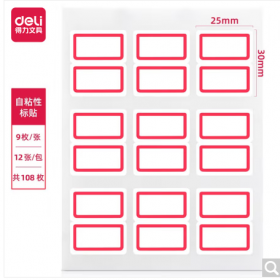得力/deli 7191 标签打印纸/条码纸 108枚25×30mm红框不干胶标签贴纸自粘性标贴纸姓名贴 9枚/张 7191