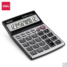 得力/deli 1566 电子计算器 赋值功能桌面计算器 双电源供能 12位宽屏显示 带拨动开关 银色1566