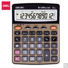 得力/deli 1560 电子计算器 12位大屏幕桌面语音计算器 大按键带闹铃桌面语音计算机 金色1560