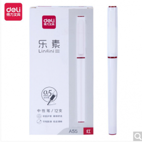 得力/deli A55 书写用笔类用具 乐素时尚中性笔签字笔 0.5mm全针管12支/盒A55红
