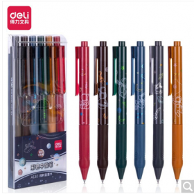 得力/deli A130 书写用笔类用具 文具问苍穹系列0.5mm彩色中性笔套装 复古色系6色按动子弹头签字笔软胶护套水笔手账笔 A130