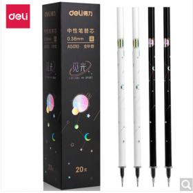得力/deli A5010 书写用笔类用具 觅光中性笔芯 学生签字笔替芯 0.38mm全针管 20支/盒A5010