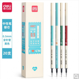 得力/deli A867 书写用笔类用具 中性笔芯签字笔替芯 赤子之心学生笔芯 爱我中华 0.5mm全针管 20支/盒DL-A867