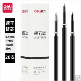 得力/deli a786 书写用笔类用具 速干0.5mm按动中性笔芯替芯 子弹头黑色20支/盒a786
