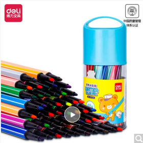得力/deli 70725 书法绘画用具 48色桶装六角杆可水洗学生水彩笔/绘画彩笔 儿童涂鸦笔 蓝色70725