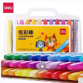 得力/deli 72077 书法绘画用具 24色水溶性油画棒 可水洗蜡笔炫彩棒旋转不脏手彩笔 儿童礼盒画画绘画套装工具文具涂色美术72077
