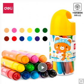 得力/deli 72054书法绘画用具 12色水溶性油画棒 画笔 不易摔断丝滑蜡笔炫彩棒美术工具转转笔彩笔幼儿绘画玩具礼物 筒装72054