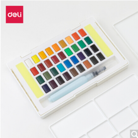 得力/deli 73890 书法绘画用具 36色固体水彩颜料 初学者学生手绘绘画专业级大师美术艺考工具便携套装 73890