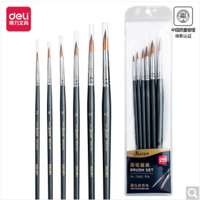 得力/deli 73892 书法绘画用具 6支(2#/4#/6#/8#/10#/12#)水粉画水彩画颜料画画笔 尼龙圆头国画美术画笔套装 73892