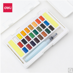 得力/deli 73889 书法绘画用具 24色固体水彩颜料 初学者学生手绘绘画专业级大师美术专用艺考工具便携套装 画具画材73889