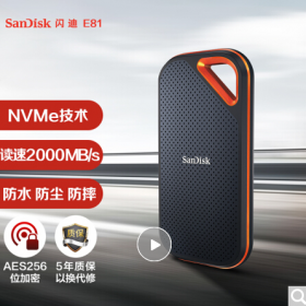 闪迪/SanDisk 1TB 移动硬盘 Nvme移动固态硬盘(PSSD)E81至尊超极速Pro升级版 高速传输2000MB/秒 IP55等级三防保护