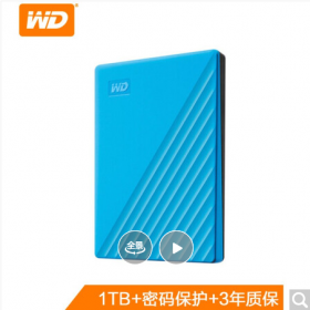 西部数据/WD 1TB 移动硬盘 USB3.0 My Passport随行版 2.5英寸 蓝色 高速 便携 加密 自动备份 兼容Mac