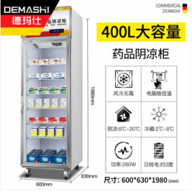 德玛仕/DEMASHI 400冷藏柜 药品阴凉柜冰箱药店药房冷藏柜展示柜医院药物恒温柜单门双门证2-8度 400升 铝合金门 风冷无霜LG-400YL