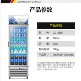 德玛仕/DEMASHI 388A 冷藏柜 展示柜冷藏柜保鲜柜商用饮料展示柜超市便利店冰箱双门单门LG-388A铝合金门【五层328L】带锁