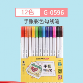 金万年/GENVANA G-0596-029 书写用笔类用具 脱帽不干12色手帐彩色勾线笔学生用多色手绘 绘画描边针管笔 12支/盒 G-0596-029
