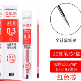 金万年/GENVANA G-5193-003书写用笔类用具 替芯0.3mm红色 细笔划全针管签字笔笔芯 学生办公财务用芯 20支/盒 G-5193-003