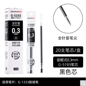 金万年/GENVANA G-5193-001 书写用笔类用具 0.3mm中性笔芯 签字笔替芯 极细全针管RS06系列黑色中性芯 20支/盒 G-5193-001