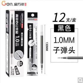 金万年/GENVANA G-5198-001书写用笔类用具 黑色大容量1.0mm子弹中性笔芯 子弹头中性笔芯 签字水笔替芯 (12支装)G-5198-001