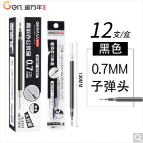 金万年/GENVANAG-5197-001 书写用笔类用具 黑色大容量0.7mm子弹中性笔芯 子弹头中性笔芯 签字水笔替芯 (12支装)G-5197-001