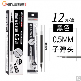金万年/GENVANA G-5195-001 书写用笔类用具 黑色大容量0.5mm子弹中性笔芯 子弹头中性笔芯 签字水笔替芯 (12支装)G-5195-001