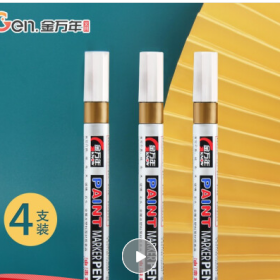 金万年/GENVANA G-0974-010 书写用笔类用具 0.7mm油漆笔白色4支装签字笔记号笔马克笔高光笔签到笔修补涂鸦笔轮胎笔不易掉色G-0974-010