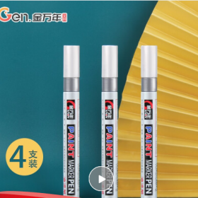 金万年/GENVANA G-0974-009 书写用笔类用具 4支彩色油漆笔签字笔记号笔马克笔高光笔签到笔涂鸦笔轮胎笔(银色)0.7mm笔幅G-0974-009