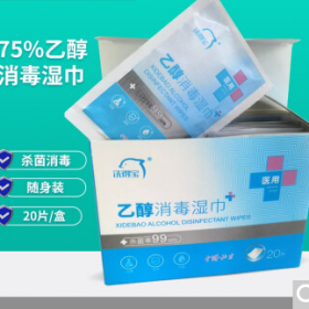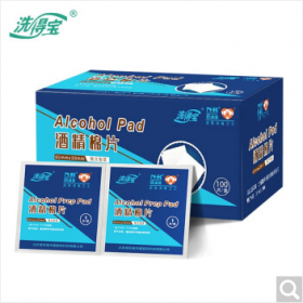 洗得宝 24188 湿巾/手帕纸酒精棉片 酒精消毒棉片湿巾 快速消毒片一次性酒精棉片消毒巾 100片/盒(65*30mm)