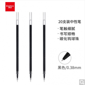 齐心/COMIX R911书写用笔类用具全针管笔芯中性笔签字笔水笔替芯0.38mm 黑色 20支/盒