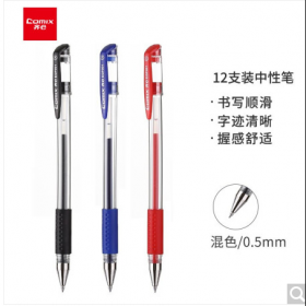 齐心/COMIX EGP001书写用笔类用具经典子弹头办公中性笔/水笔/签字笔 0.5mm 9黑+2红+1蓝 12支/盒