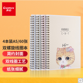 齐心/COMIX ECC4530薄本册 4 本装A5/60张线圈本日记本记事本文具笔记本子