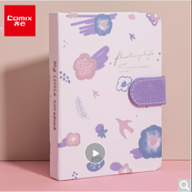 齐心/COMIX C6100 薄本册文具64K/146页学生笔记本子记事本皮面磁扣手账本便携手帐日记本 粉紫