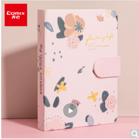 齐心/COMIX C6100薄本册文具64K/146页学生笔记本子记事本皮面磁扣手账本便携手帐日记本 粉红