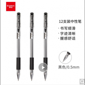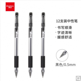 • 齐心/COMIX GP306书写用笔类用具黑色装经济实用商务中性笔/水笔/0.5mm办公签字笔 12支/盒 办公文具 工具