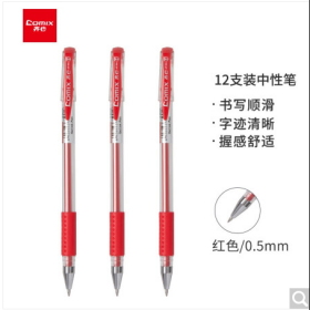 • 齐心/COMIX GP306书写用笔类用具经济实用商务中性笔/水笔/0.5mm办公签字笔 12支/盒 红色 办公文具