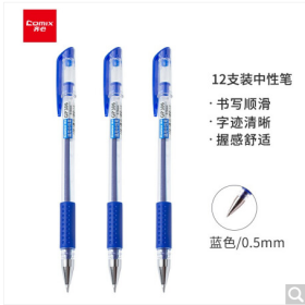 • 齐心/COMIX GP306 书写用笔类用具12支装0.5mm 经济实用商务中性笔/水笔/签字笔 蓝色 办公文具